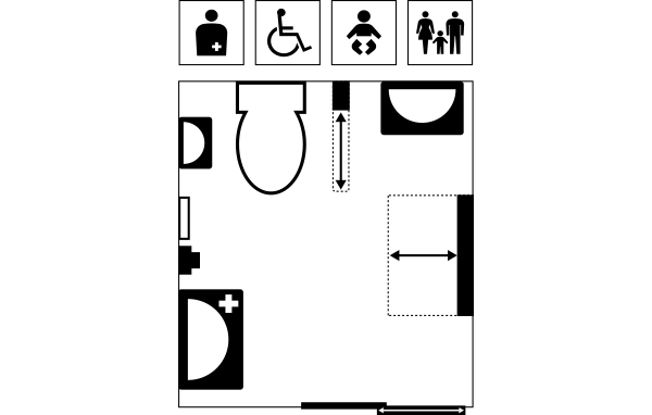 | Equipment: | 洋式便座/流し/オストメイト流し台/横折畳式ベビーベッド/上下可動式手すり/ゴミ箱/トイレ流しボタン/温水洗浄ボタン/非常ボタン/ベビーチェア |