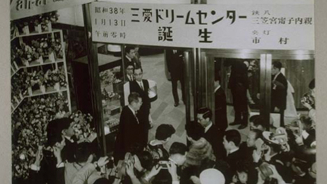 Then in January 1963 (Showa 38), the two-story Ginza San-Ai building was rebuilt as cylinder-shaped nine-story building, named the San-Ai Dream Center. The extravagant opening ceremony held late at night on January 13 was much talked about, to the extent that it was covered in newsreels and newspaper articles.