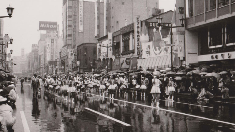On August 2, 1970, Ginza -dori was closed to traffic to become a pedestrian paradise for the first time. The pedestrian paradise was called a “Holiday Promenade,” and the name was thereafter used to call the first Sunday in August a “Holiday Promenade,” during which events are held each year.
