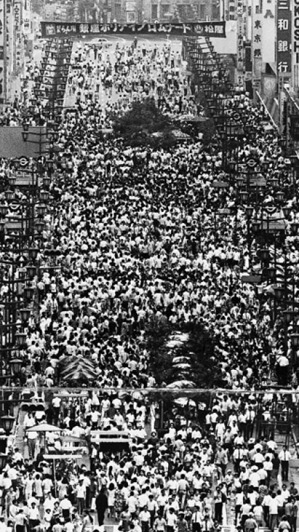 Ginza Chuo-dori crowded with people on the first day of the pedestrian paradise. Taken on August 2, 1970 (source: Yomiuri Shimbun)