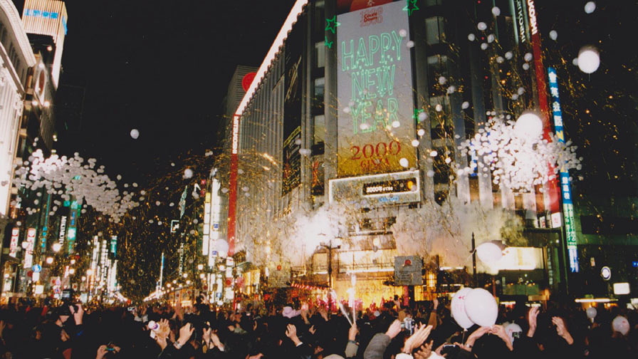 A countdown was held on the Ginza 4-Chome intersection on December 31, 1999.