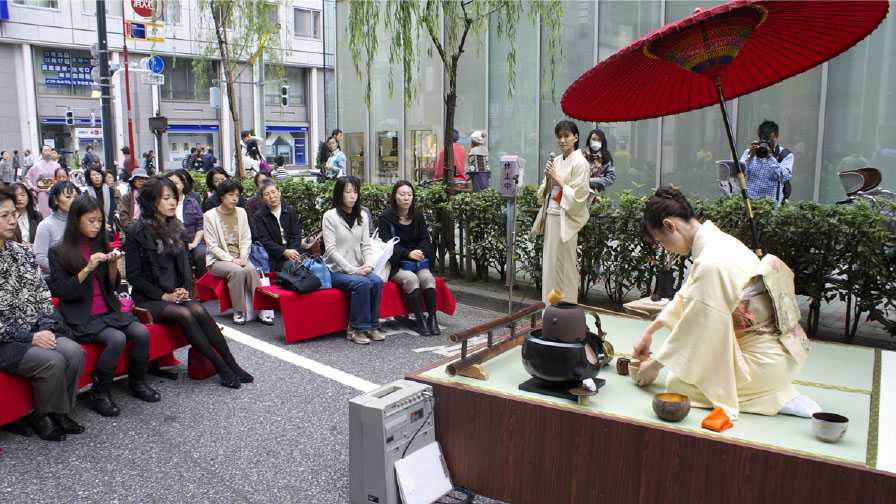 An event to commemorate the conclusion of a free-trade agreement between Japan and Singapore was taken as an opportunity to hold Ginza Accueille in 2001 as a new Ginza festival. In the Grand Ginza Festival of the past, planning and running the event was delegated to advertising agencies. In contrast, the new festival was devised and created by hand by the people of Ginza.