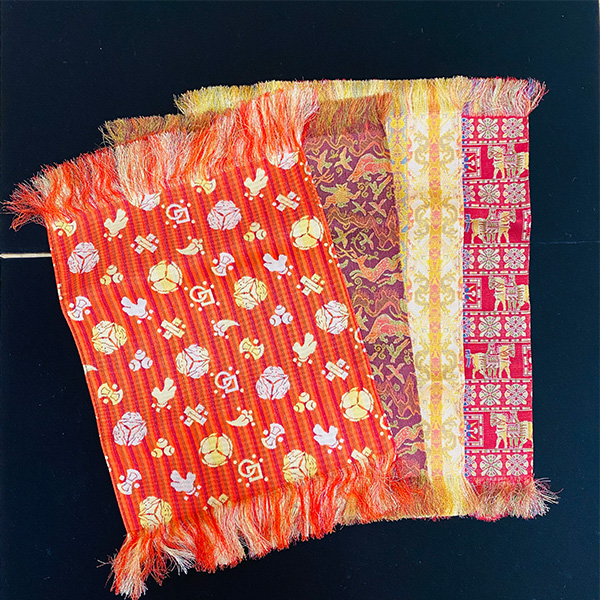 Tatsumuragire is silk fabric produced by Tatsumura Textile Co., Ltd., a prestigious textile manufacturer in Nishijin, Kyoto. Heizo Tatsumura, the company’s founder, reproduced old designs that were no longer passed on and had been discontinued. This product gracefully enhances a room and is popular as a present or souvenir for people overseas. There are English translations explaining the patterns to deepen understanding.