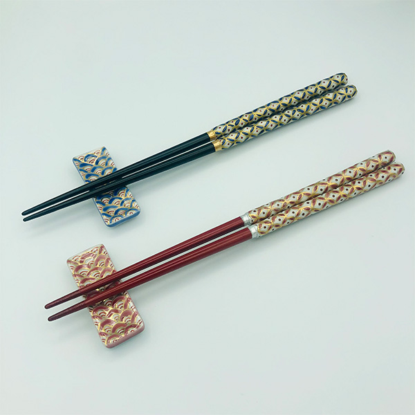 Kiyomizu Ware Shippo Patterned Couples Chopsticks 39,600 yen, Kiyomizu Ware Wave Patterned Chopstick Rests 2,200 yen each