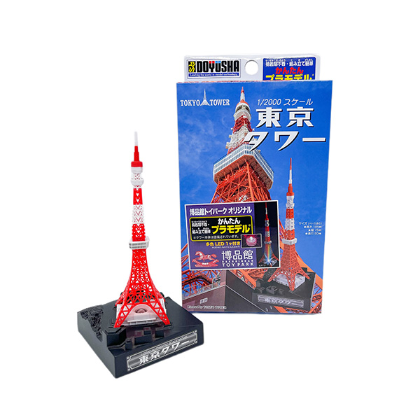 An original item from Hakuhinkan Toy Park. The plastic model of Tokyo Tower can easily be put together by anyone without any adhesive needed. It can also be lit up by an LED light placed inside the base. Be sure to buy it to commemorate your trip to Tokyo!
