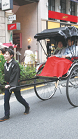 Take a round trip ride between 6- and 8-Chome on Nishi-Ginza Dori in rickshaws that were a lively part of the parade. Enjoy the Ginza scenery from a rickshaw.
