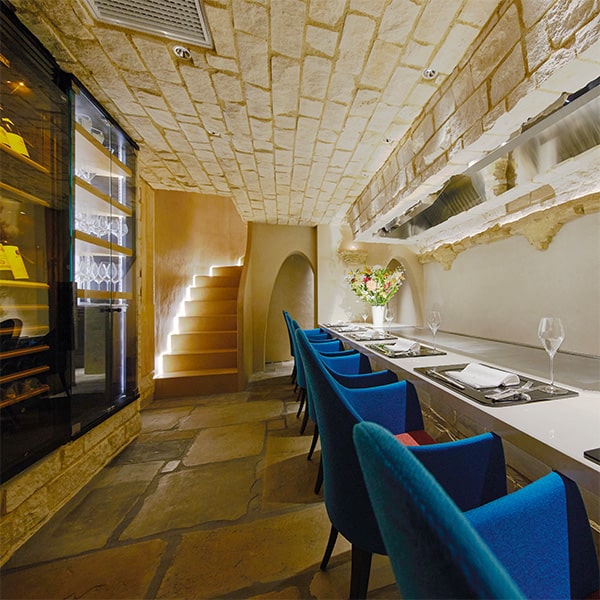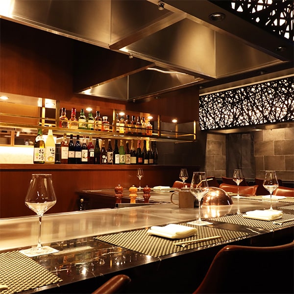 The restaurant offers counter seats on the first floor with the teppan grill right in front of you, and private rooms on the second floor with chairs arranged around the grill. A luxurious experience unfolds as the chef cooks right before your eyes, while you enjoy conversation surrounded by the aromas and sounds of the cuisine—a feast for all five senses.