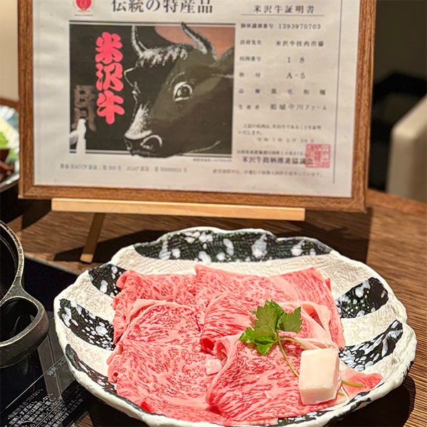 The signature dish, sukiyaki, uses a secret miso sauce that has been passed down for generations. The special warishita sauce, based on red miso and perfectly blended with soy sauce and other seasonings, enhances the rich flavor of Yonezawa beef even further.