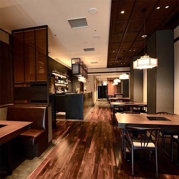 “Niku-Kappo” on the third floor is a luxurious space that is open only during dinner time hours. The elegant atmosphere created by the hinoki (Japanese cypress) counter makes it perfect for a special dinner, offering a truly memorable experience.