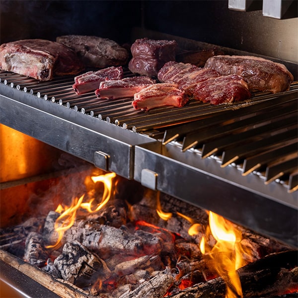 PARRILLA means "grill" in Spanish, and is a traditional method of cooking meat by slowly grilling it over a wood fire. Though heat control can be challenging, the method locks in the meat’s natural juices, resulting in a crisp, light exterior and a plump, juicy interior. The meat is wrapped in a fragrant aroma and rich flavor, which will hook you at first bite. The firewood used is of three types: oak, chestnut, and cherry. These further enhance the flavor of the meat.
