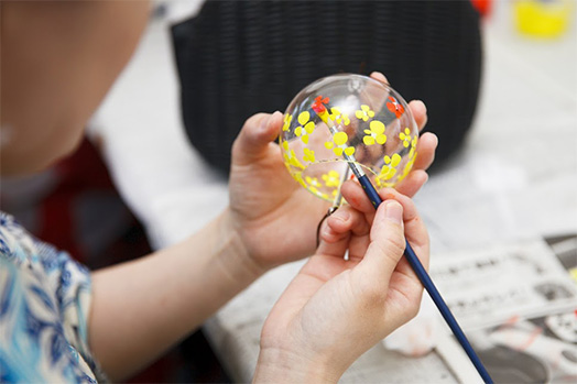 Draw pictures on Edo-style wind chimes that ring out a cool-sounding tune to create a one-of-a-kind wind chime.